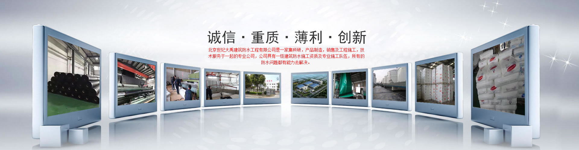 北京世紀大禹建筑防水工程有限公司       北京世紀大禹建筑防水工程有限公司是一家集科研,產品制造,銷售及工程施工,技術服務于一起的專業公司,產品主要包括道路橋梁專用材料、建筑堵漏材料、建筑防水卷材、建筑防水涂料等。產品行銷全國,形成了覆蓋全國的營銷服務網絡。產品廣泛應用于建筑物屋面、地下、地鐵、隧道、橋梁、泳池、糧庫、種植屋面等防水、防潮、防腐、防滲等工程。公司具有一級建筑防水施工資質及專業施工隊伍,所有的防水問題都有能力去解決,作為系統防水解決方案的提供者,我們已經將各項防水系統成功應用于國家大型基礎設施建設項目中,防水系統優良的應用效果也獲得了用戶及社會各界的高度評價。